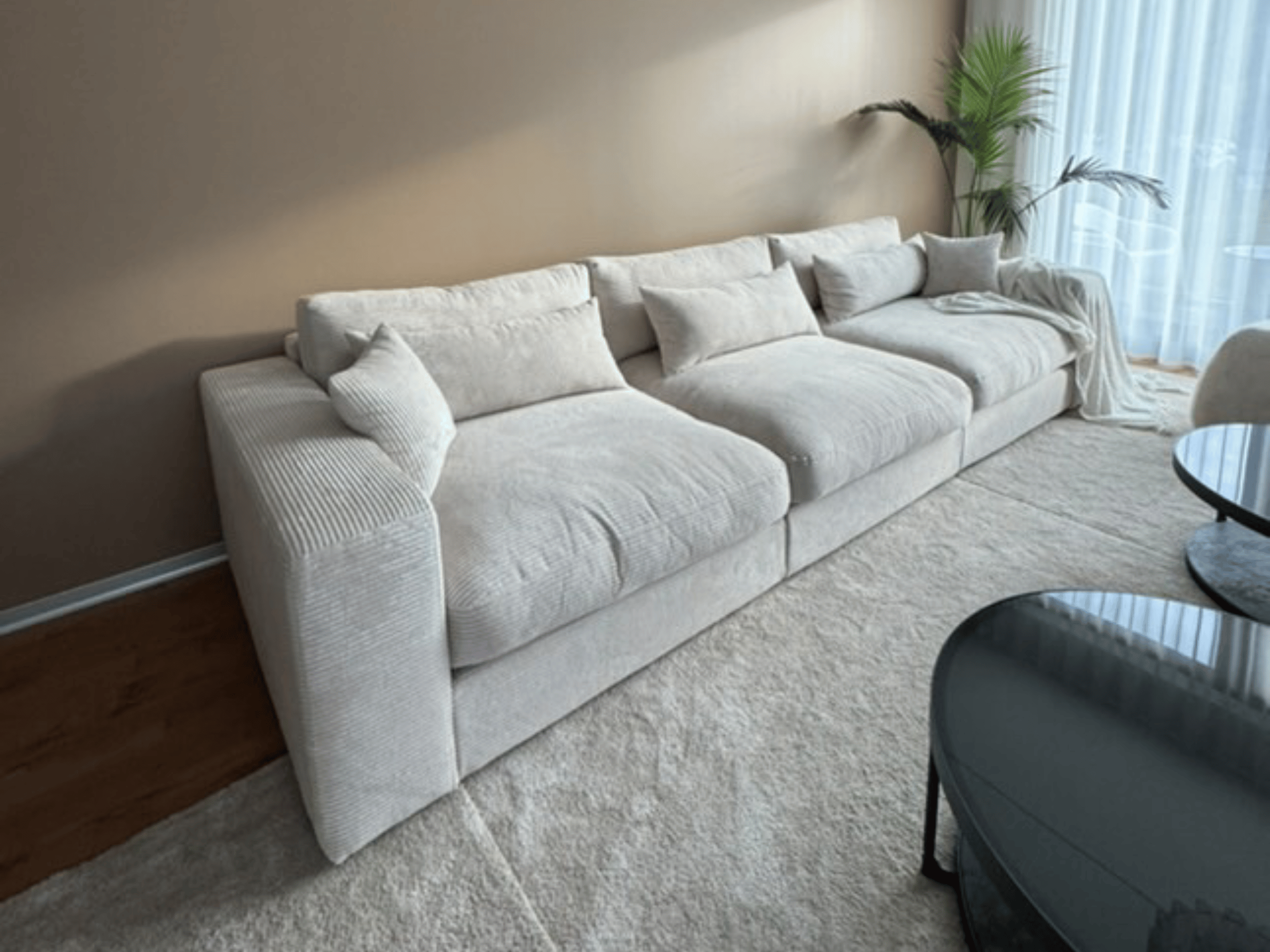 Eritellimusel Bossy diivan 3500x1250mm, kangas Ribcord Ivory 101