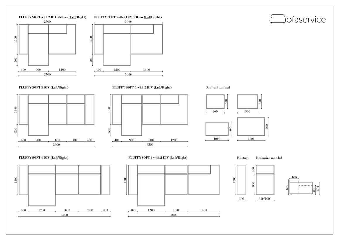 Fluffy Softi juurde saab lisada ka samas stiilis tumba ning soovi korral kohandada diivani mõõte vastavalt oma vajadustele.