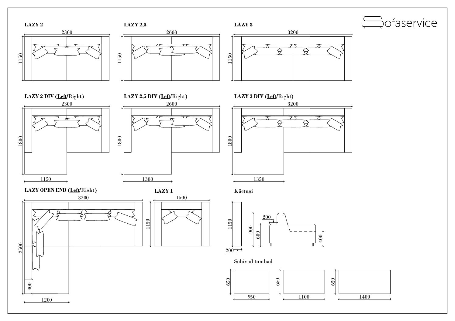 Lazy diivani praktilisus ei jää mugavusele alla – eemaldatavad padjakatted muudavad diivani hooldamise lihtsaks ja kiireks. Diivani mõõdud on kohandatavad vastavalt vajadustele, et see sobituks ideaalselt sinu ruumi. Lai kanga- ja materjalivalik võimaldab valida just selle õige kombinatsiooni, mis sinu kodu atmosfääri täiendab. Lisaks saad ise valida, milliseid jalgu oma Lazyle soovid – olgu need kõrged või madalad, puidust või metallist, tumedates või heledates toonides. Mudelit saad näha Tabasalu showroomis.