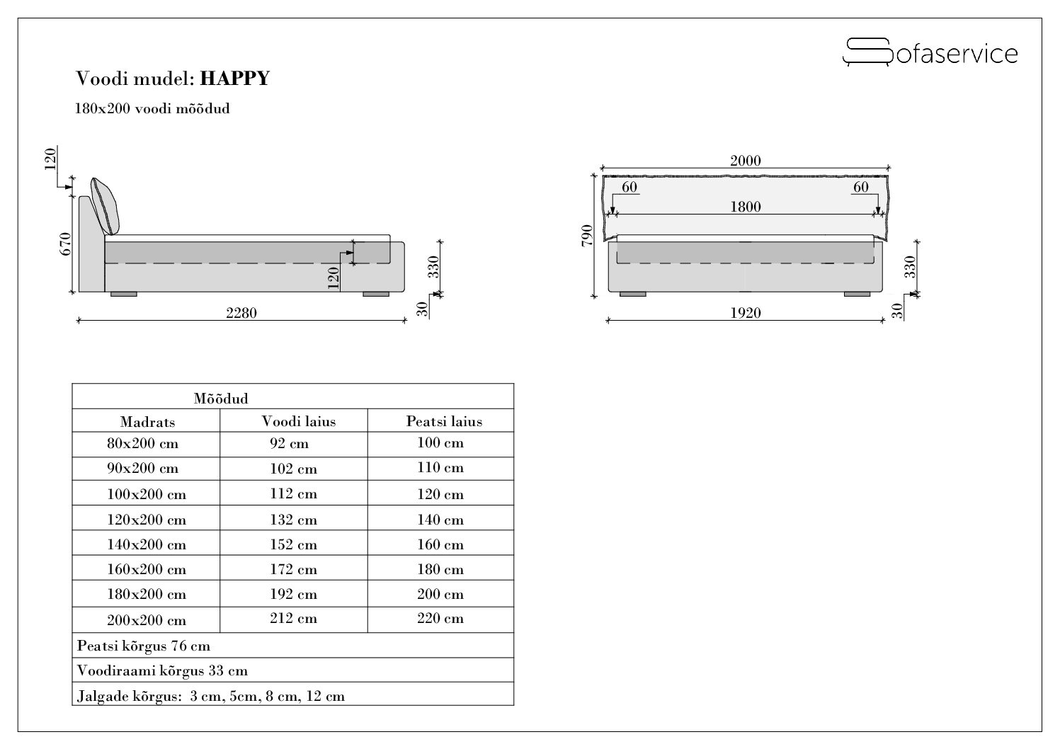 Ja kui Happy voodi on sulle õige, aga sooviksid suuremat peatsipatja, sügavamat raami või muid muudatusi – kõik mõõdud on kohandatavad. Anna vaid märku.